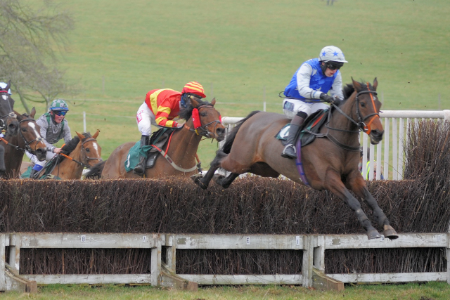 The opening 2m4f Bedmax Maiden Race has 11 entries and may chiefly concern the Jack Teal-trained newcomer Matterofexpression, Cinque Terre and Phantoms Cave (left, blue). Related to several jumps winners, Matterofexpression is guaranteed to be primed from a yard noted for getting one ready to do the business on debut. Locally trained Cinque Terre was only beaten a length by The Village Way in a slowly run 3m Berwickshire Restricted, while well related Phantoms Cave caught the eye on his first start over fences when eleven lengths 3rd to the useful Trust Me Nate in last month's 2m4f Jedforest Maiden. Newton-by-the-Sea owner/trainer Victor Thompson is planning to saddle a total of eight runners including All Ways And Ever and 97-rated hurdler Park Hind in the opener. All Ways And Ever finished eight lengths 6th to Great Notions in the 3m Percy Maiden and has scope for improvement over a shorter trip, while Park Hind shaped well on her first start for 22 months when fifteen lengths 4th to Built By Rossies at Friars Haugh a fortnight ago.