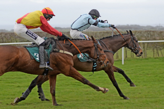 On another good day for Will Ramsay's Jockey Start scheme, former Charlie Longsdon-trained chaser Harjo (right, red) provided Jesika Rennie with a 4th winner from only eight rides in the 3m Bedmax Norrthern Area Conditions Race.